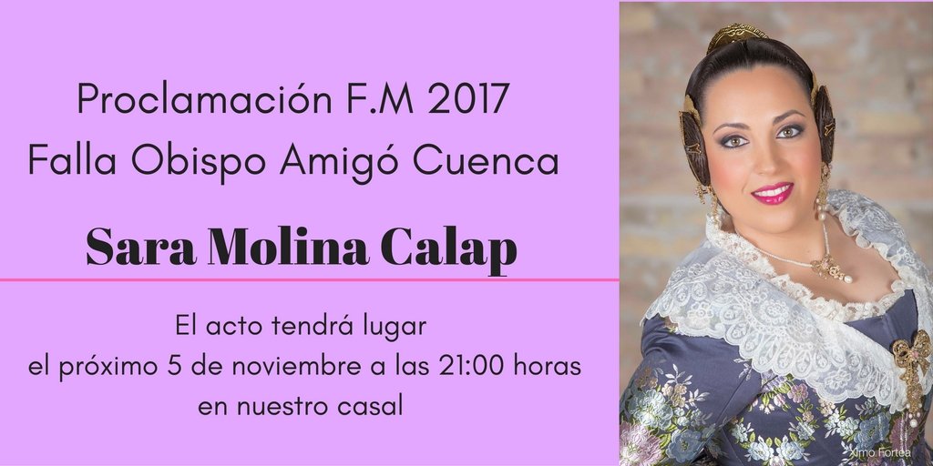 Hoy es el gran día para Sara Molina Calap. Un día que no olvidará en su vida, el acto en el que será Proclamada Fallera Mayor de su comisión.