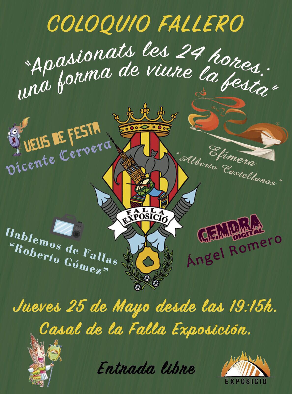 El próximo día 25 de Mayo, a las 19:15h., la comisión de falla Exposición-Micer Mascó prepará un Coloquio Fallero "Apasionats les 24h: Una Forma de Viure la Festa".