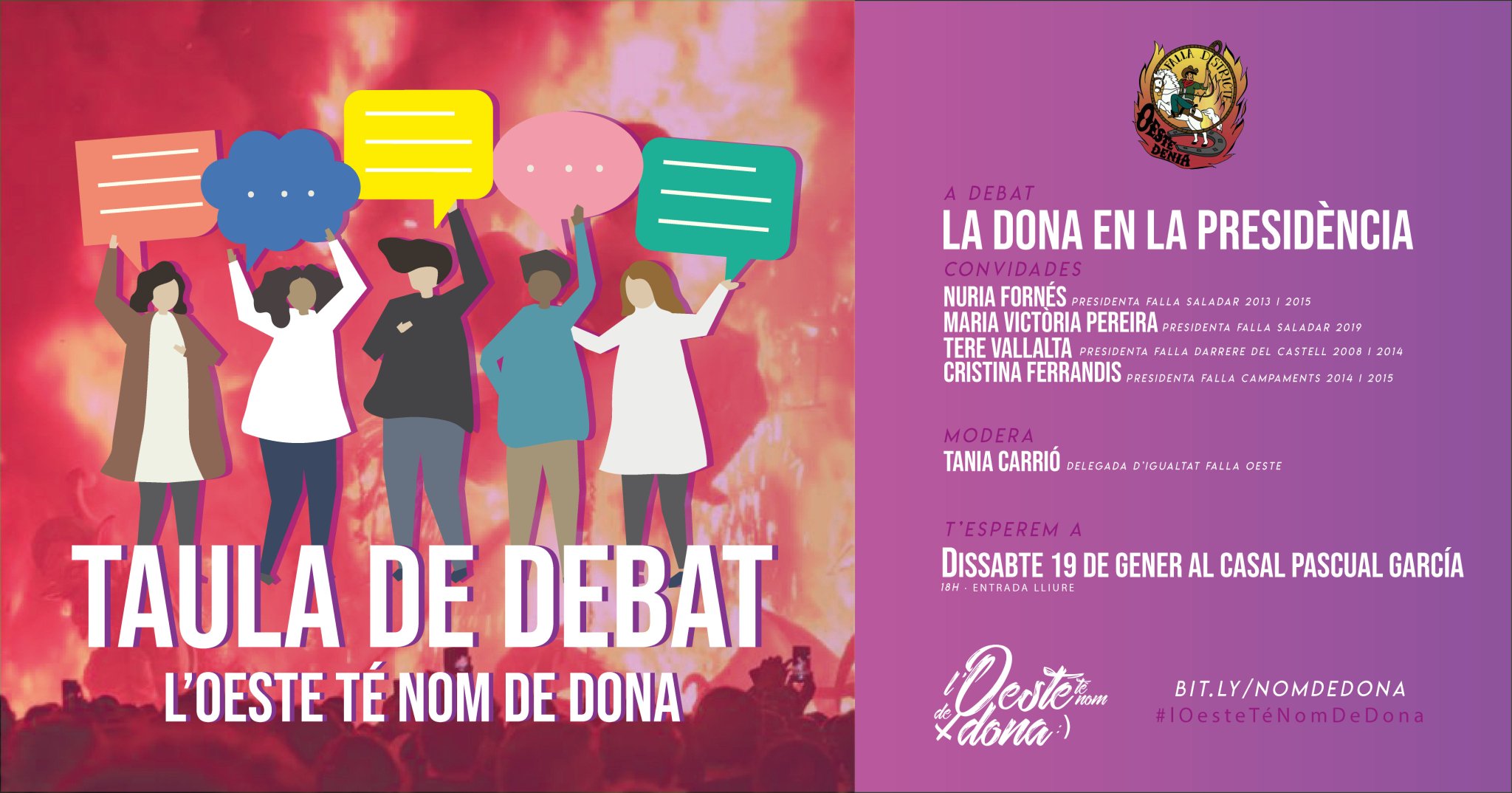 El próximo sábado en la Falla Oeste de Dénia celebra una Taula de Debat "La Dona en el Presidència" en el Casal Pascual García.